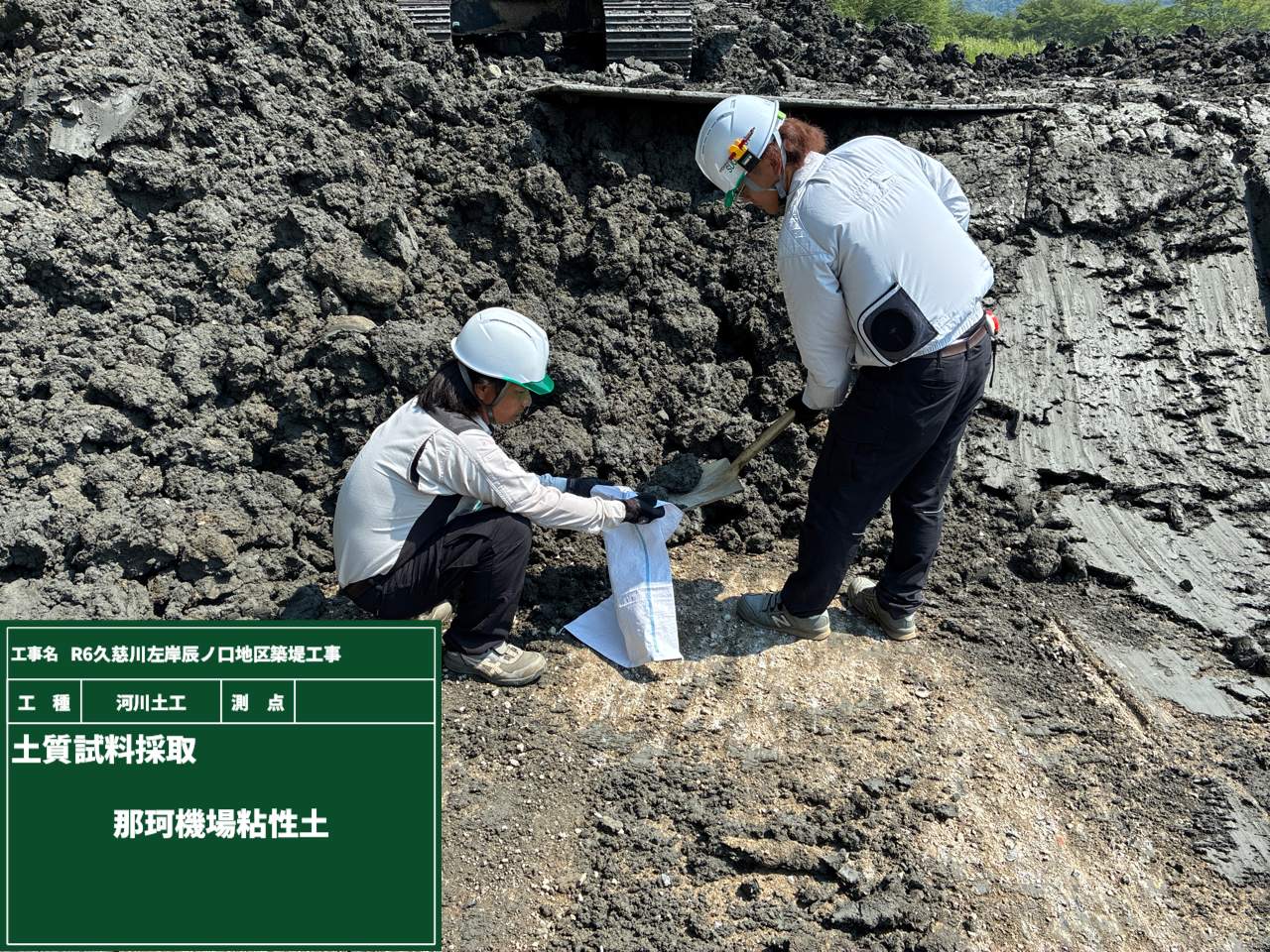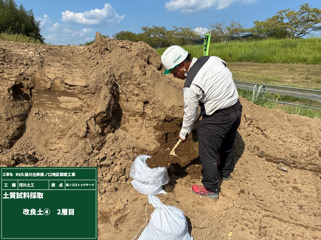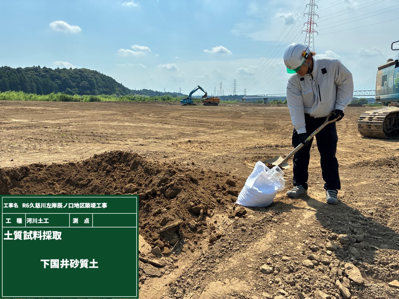これからつくる改良土に使用する、”粘性土の量”を把握するために測定しています!