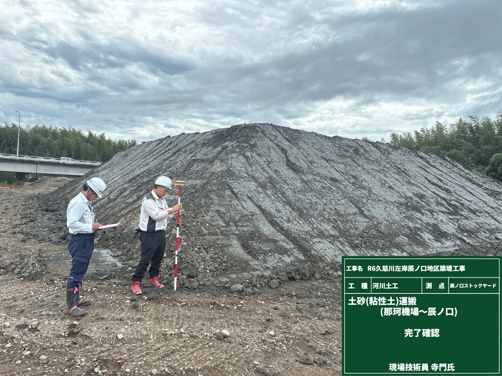 土は大切な資源です👆 再利用をするため、正確な数量を把握して必要な場所で使用します。