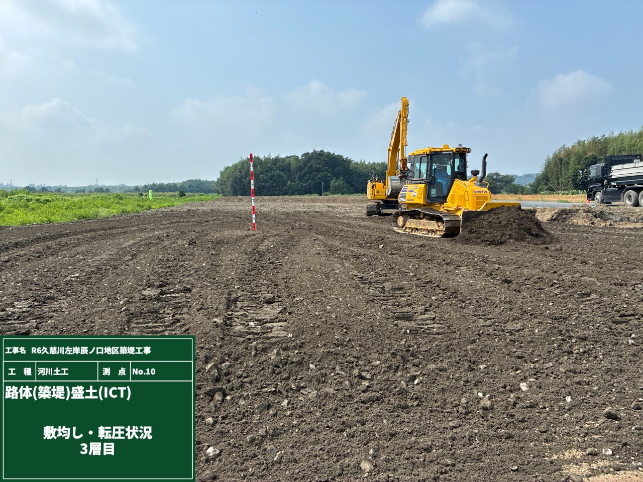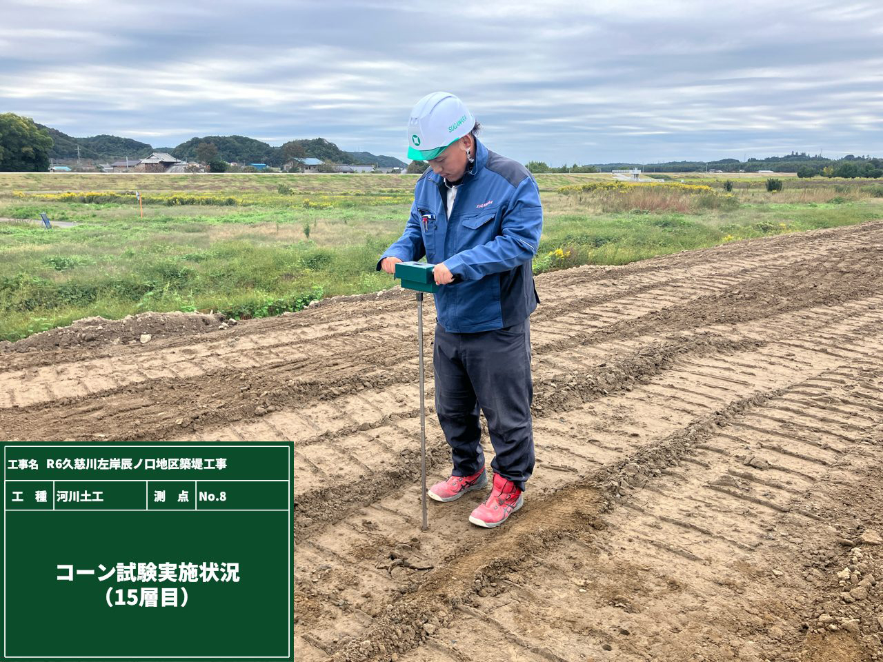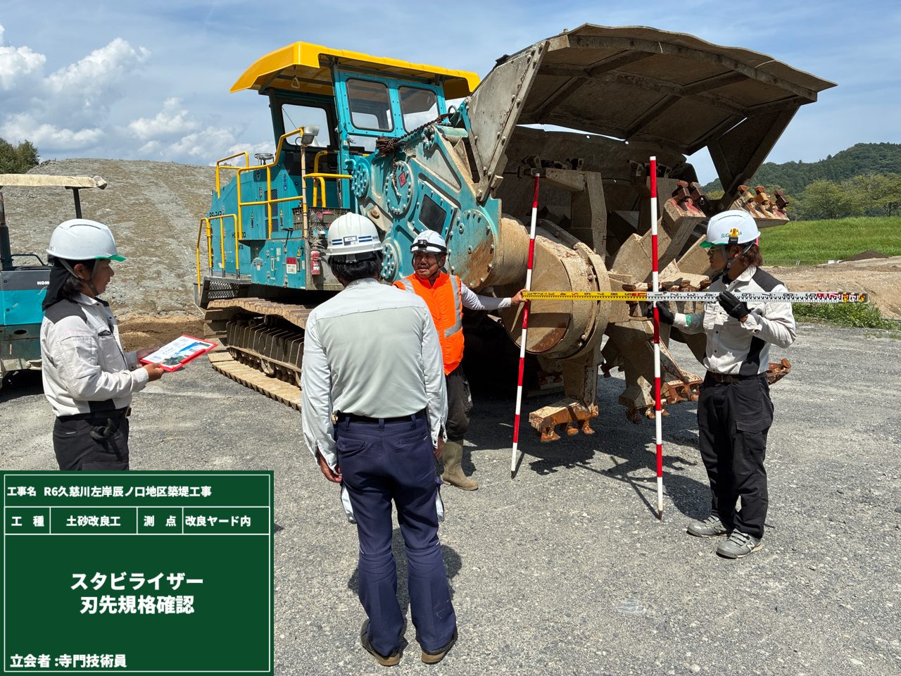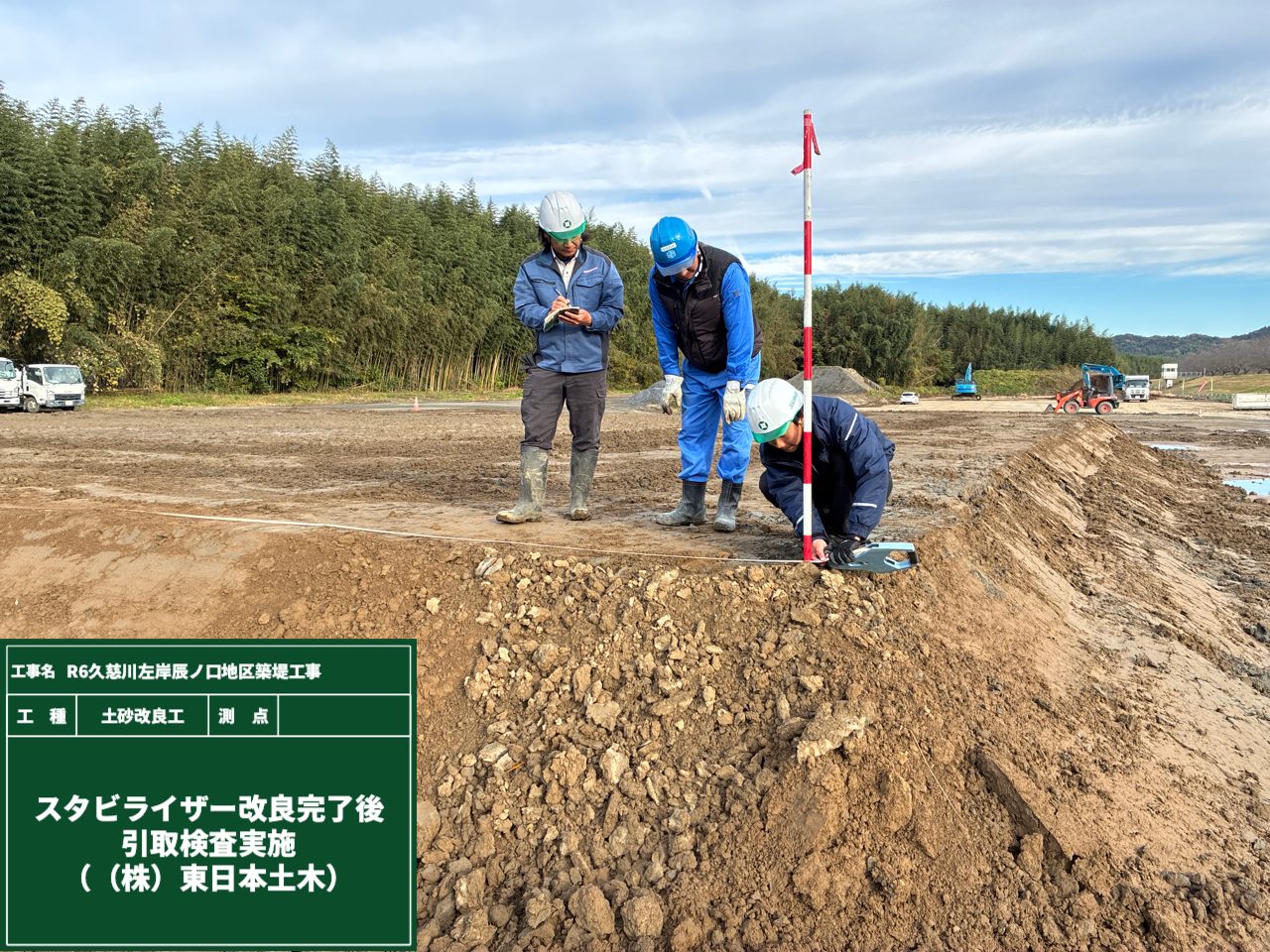 設計通りの数量になっているか、改良工事を行った範囲(面積)と改良された深さ(厚さ)、使用した固化材の投入量を現場で計測します👆