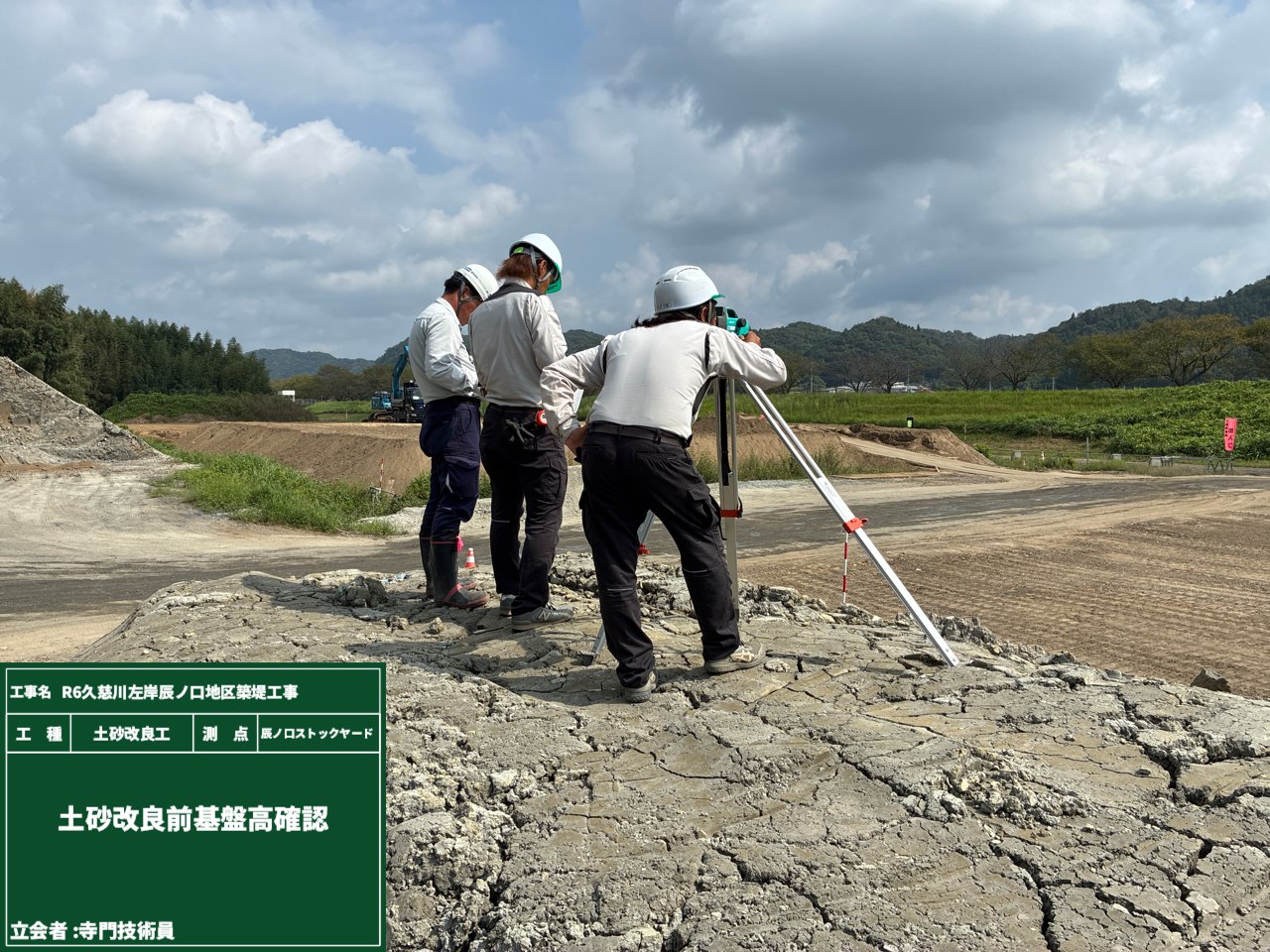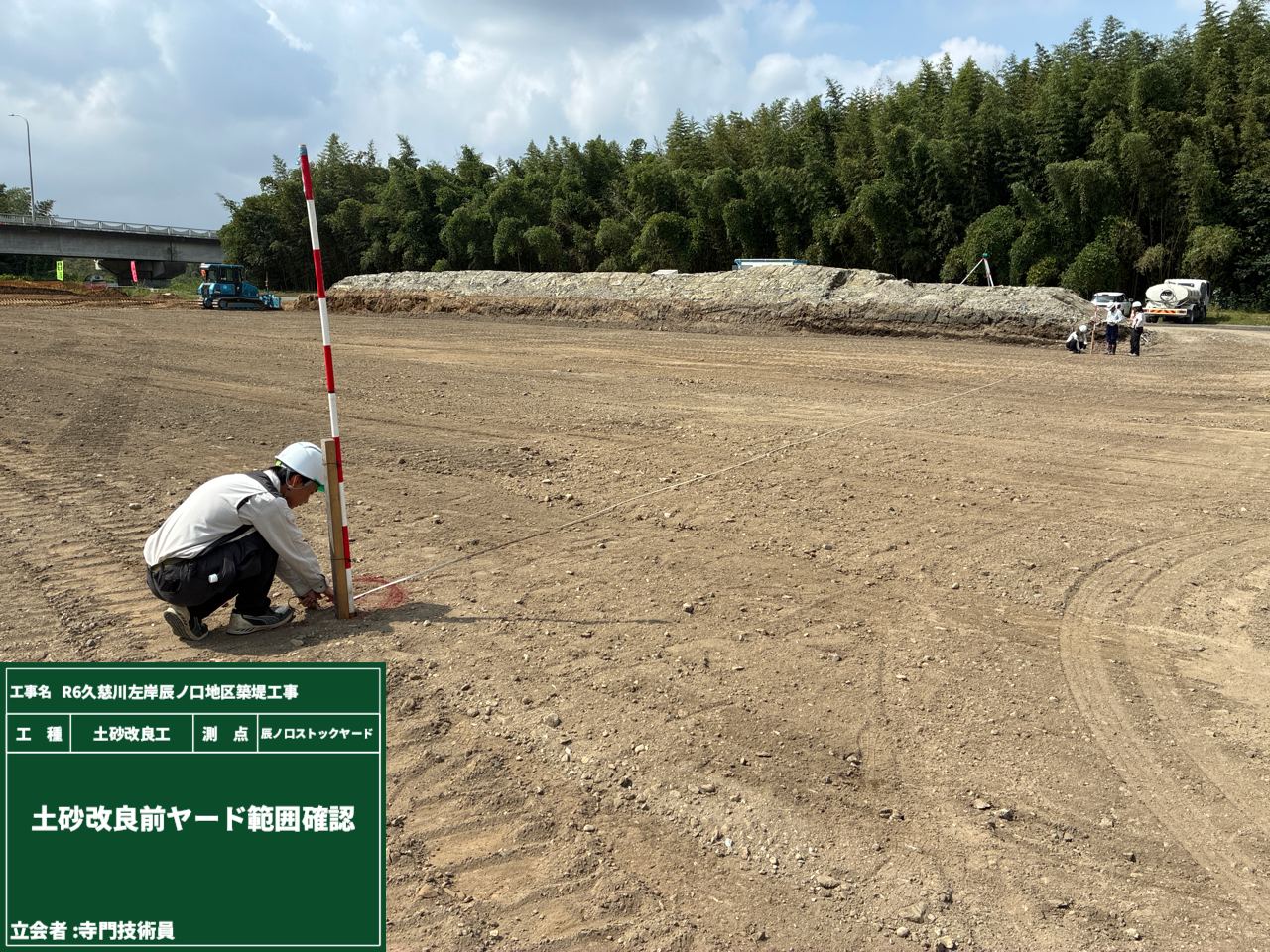地盤改良に使用される”改良土の量”を、正確に把握するために測定しています!