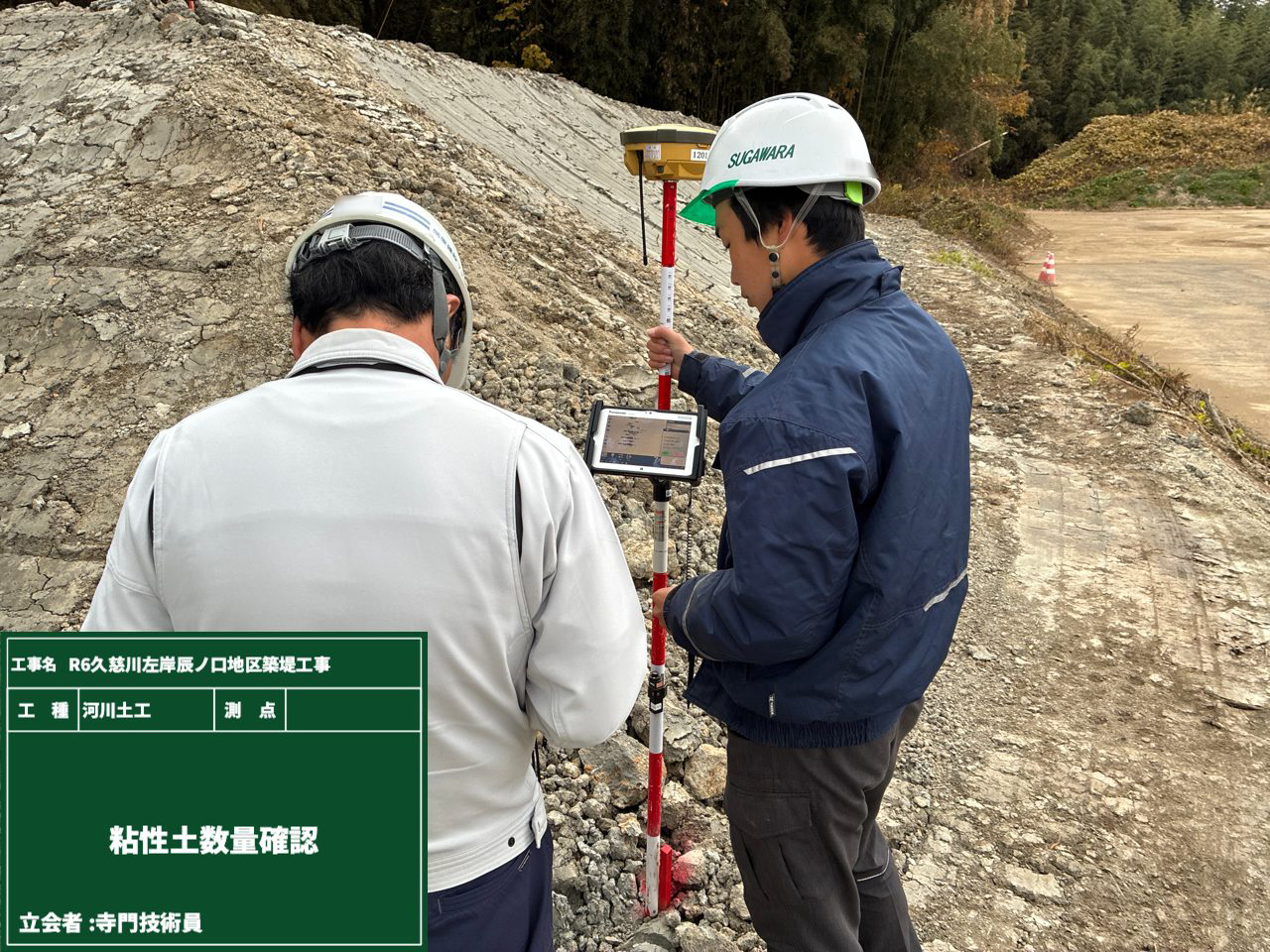 この現場ではICT施工を実施しているのですが、測量にも3次元計測技術を使っています!